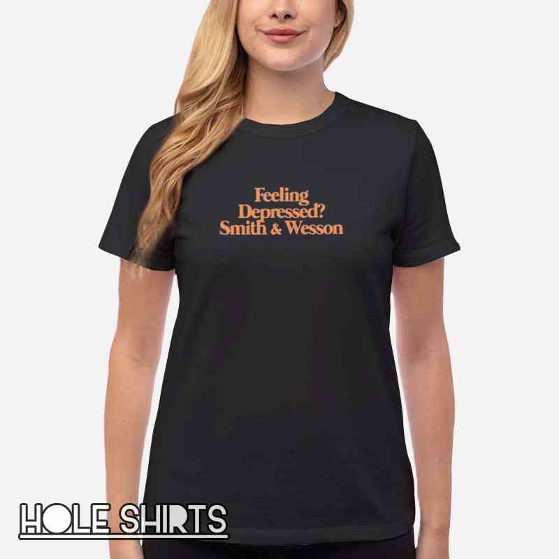 Express your edgy humor with the Quotes Feeling Depressed Smith And Wesson Shirt. Order now from Holeshirts and enjoy a piece of apparel that’s as bold as it is comfortable!